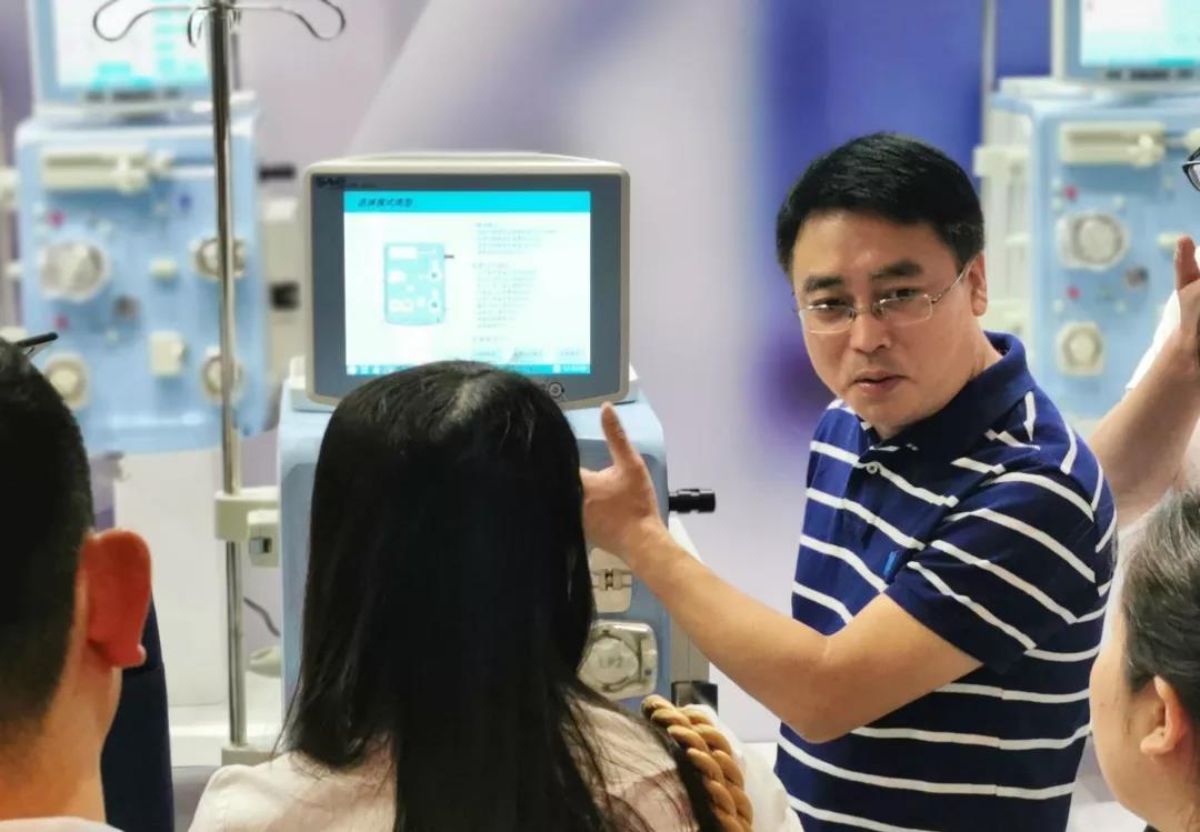 山外山公司工作人員現(xiàn)場展示SWS-5000連續(xù)性血液凈化設備功能
