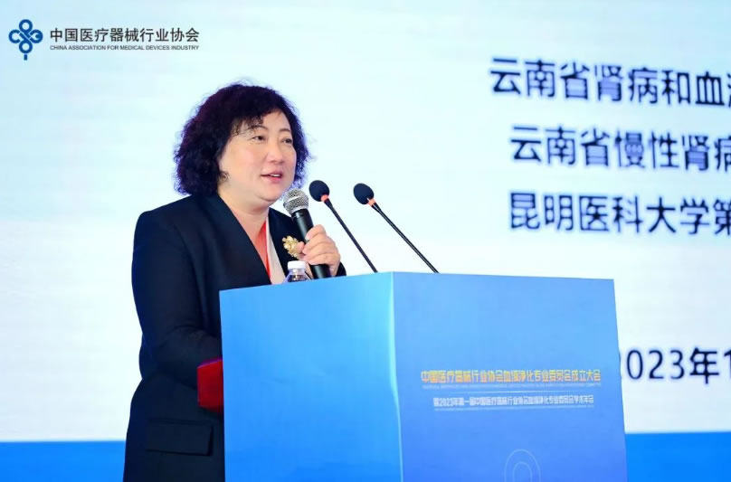 中國醫(yī)療器械行業(yè)協(xié)會秘書長徐珊親臨會場,對血液凈化專委會的成立表示熱烈祝賀。