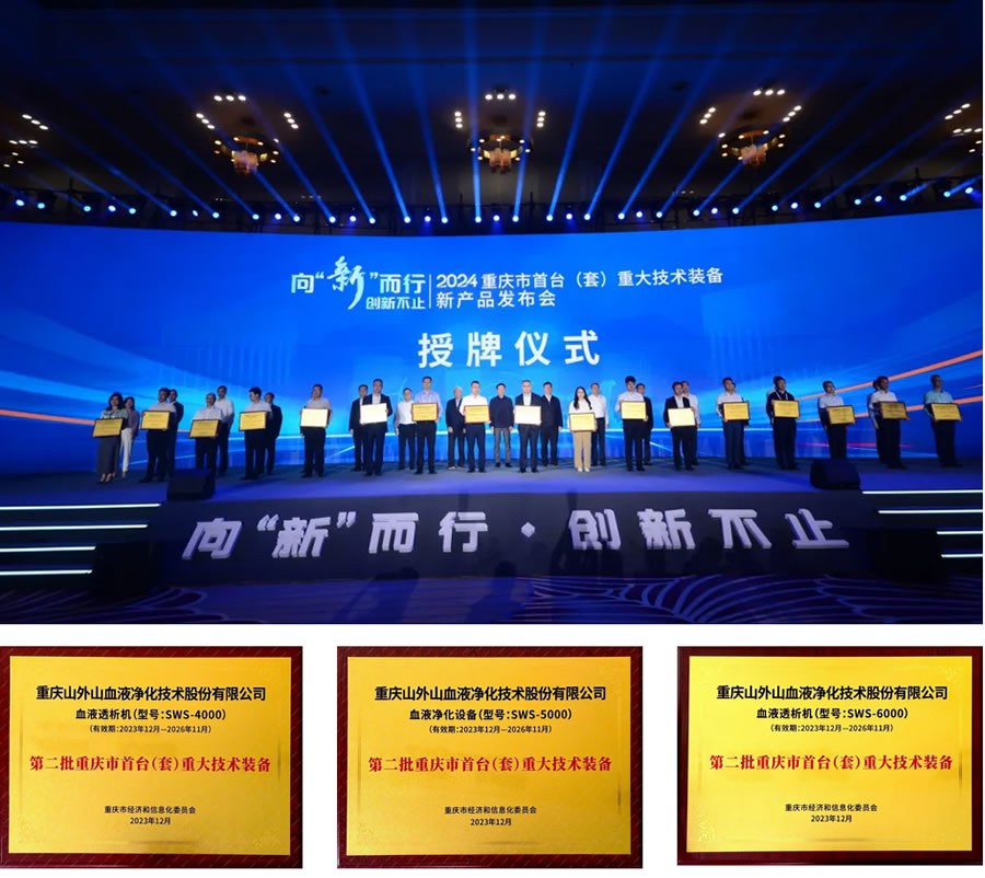 2024年5月12日,2024重慶市首臺(tái)(套)重大技術(shù)裝備新產(chǎn)品發(fā)布會(huì)上,重慶山外山血液凈化技術(shù)股份有限公司(以下簡稱“山外山公司”,股票代碼:688410)三項(xiàng)產(chǎn)品被認(rèn)定為第二批重慶市首臺(tái)(套)重大技術(shù)裝備產(chǎn)品。