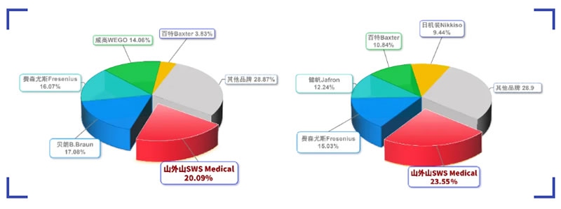 2024年第三季度,山外山血液透析機(jī)市場(chǎng)占有率20.09%,連續(xù)性血液凈化設(shè)備(CRRT)市場(chǎng)占有率23.55%,均位列行業(yè)第一▲(數(shù)據(jù)來(lái)源:今日標(biāo)訊)
